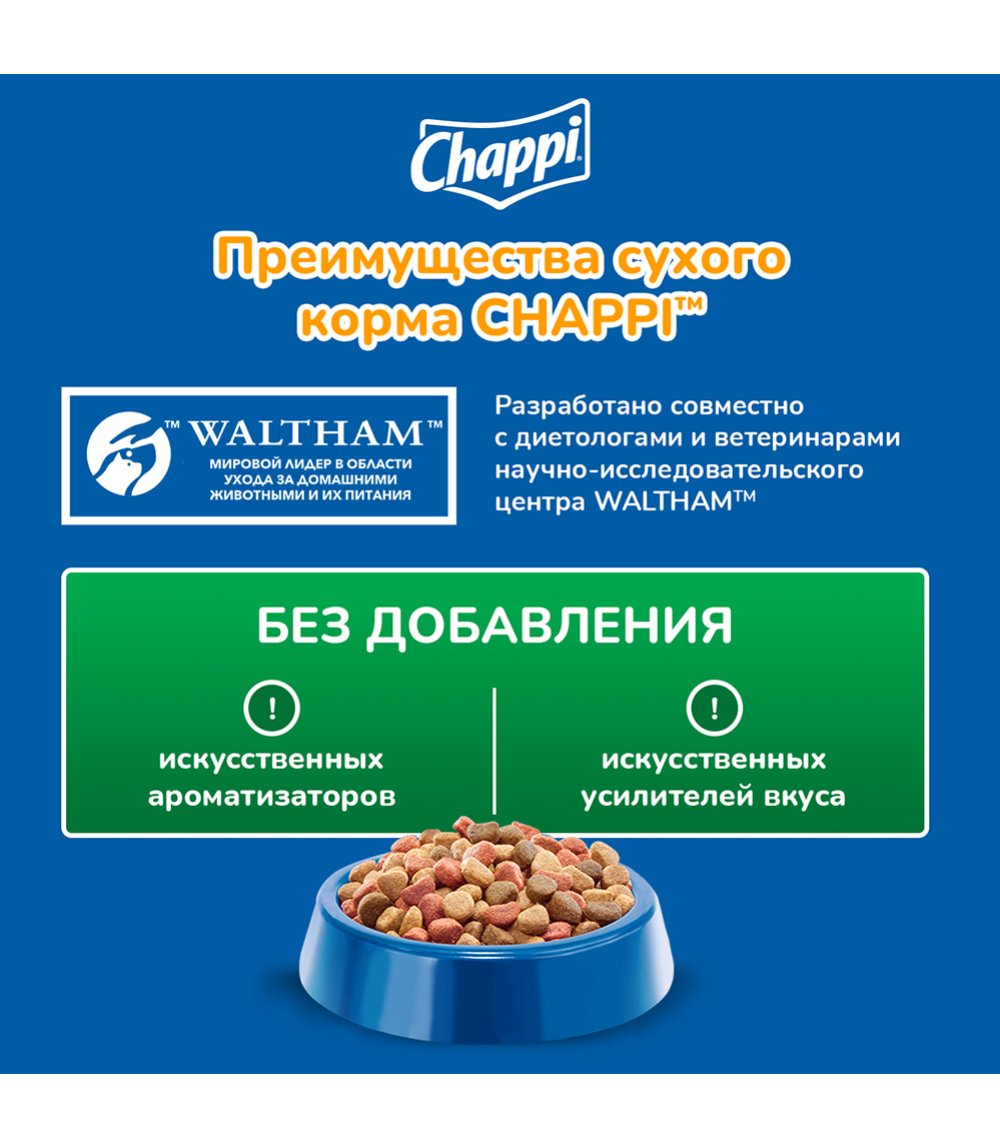 Chappi dry dog food, hearty meat lunch
